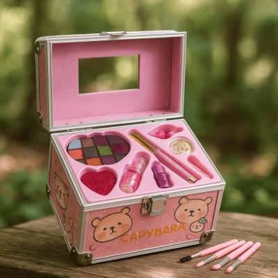 косметика, тени, лак, помада, блестик, кисточки, в чемодане