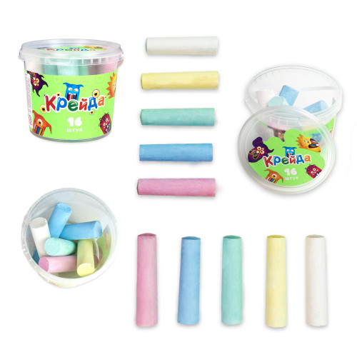 ♦ Комплектація: пластикова ємність для зберігання (висота 11.5 см, діаметр 13 см), крейдяні палички – 16 шт.