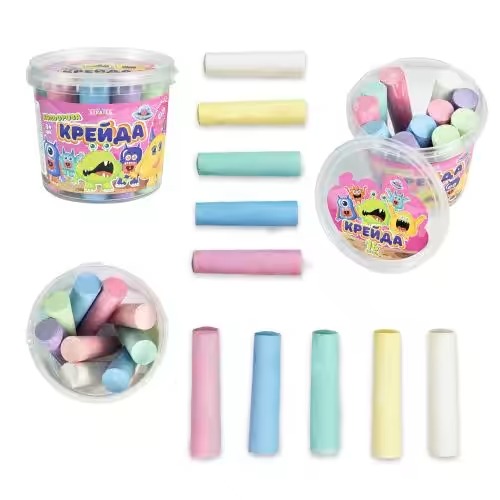 Комплектація: пластикова ємність для зберігання (висота 11.5 см, діаметр 13 см), крейдяні палички – 16 шт. (виготовлені з крейди, гіпсу, води та барвника).