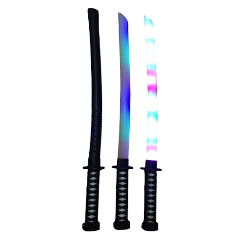 МЕЧ САМУРАЯ С НОЖНАМИ ОСНАЩЁН ЗВУКОВЫМ ЭФФЕКТОМ, ЯРКО СВЕТИТСЯ. ПРИ ИЗМЕНЕНИИ ПОЛОЖЕНИЯ САМУРАЙСЬКОГО МЕЧА, ИЗДАЁТСЯ ЗВУК ЛЯЗК ЖЕЛЕЗА. САМУРАЙСКИЙ МЕЧ КАТАНА ИДЁТ В КОМПЛЕКТЕ С НОЖНАМИ , В КОТОРЫХ ЕСТЬ ОТВЕРСТИЯ ДЛЯ КРЕПЛЕНИЯ НА ПОЯС. РАЗМЕР 67СМ