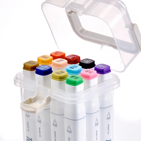 маркер, фломастер, двухсторонний маркер для скетчинга, 12шт,в пластиковом боксе