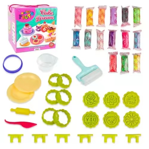“Містер тісто. Cake Dream” - це ідеальна комбінація м'якої текстури та насичених кольорів, що дозволяє вам створювати унікальні та яскраві композиції. Завдяки м'якості і гнучкості тіста, ви можете без зусиль моделювати різноманітні фігури та форми.