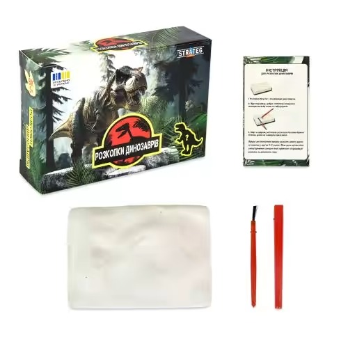 За допомогою гіпсового блоку та спеціальних інструментів дитина зможе відчути себе справжнім археологом, розкопуючи приховані фігури. Інструкція допоможе легко пройти всі етапи розкопок. Цей набір розвиває увагу, терплячість і дарує знання про життя на Землі мільйони років тому.