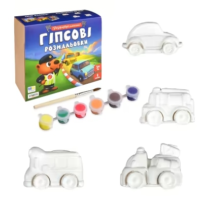«Гіпсові розмальовки: Розфарбуй машини» — набір, що перетворює творчість на захопливу гру! Малюк власноруч розфарбує гіпсові фігурки машинок, створюючи унікальні кольорові шедеври. Така гра розвиває дрібну моторику, уяву, посидючість і допомагає дитині відчути себе справжнім художником.
