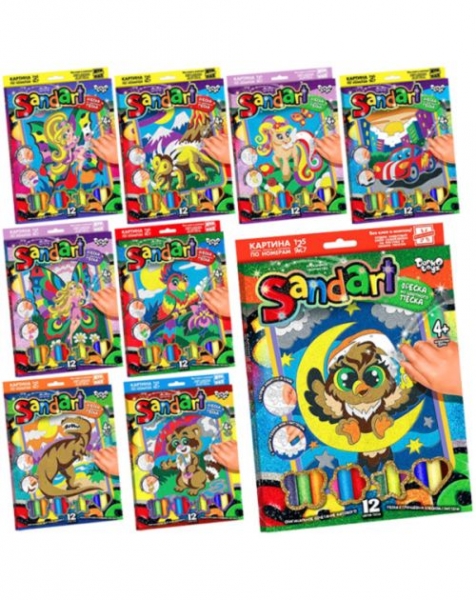 Фреска из Цветного Песка, - картинка-планшет для создания фрески; - комплект разноцветного песка; - глиттерные блестки; - инструкция; - в коробке, мозаика
