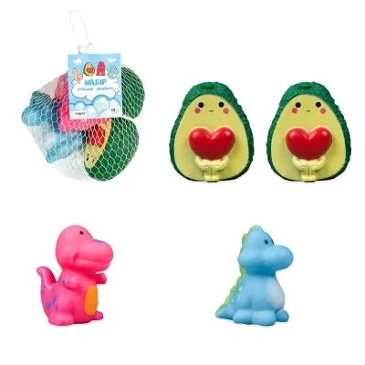 «Набір іграшок-пищалок, що привертають увагу й видають звук при натисканні. Іграшки розвивають дрібну моторику, координацію рухів і дарують малюкам гарний настрій.