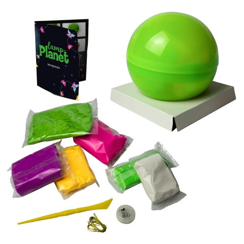 «Lamp-planet» – это набор для творчества, который поможет ребенку задекорировать свой фонарик. В наборе вы найдете две полусферы, массу для лепки и инструкцию, с помощью которой можно слепить впечатляющий вулкан. А потом в полушария можно поместить специальную лампочку и наслаждаться разноцветным освещением. Также вы можете не использовать инструкцию, а лепить по собственной фантазии.