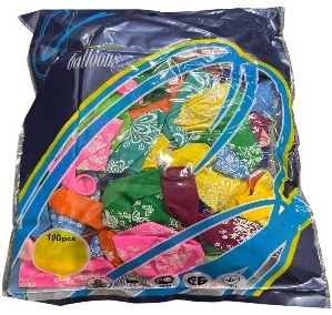 надувные шарики, микс цветов, с рисунками, 100шт, в кульке