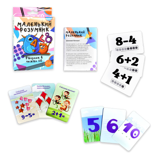 48 картонних карток, паперова інструкціяНастільна гра "Маленький розумник" (Strateg 30271) - це розвиваюча гра українською мовою, в ній 48 карток з задачами різного рівня складності, який підвищується поступово.