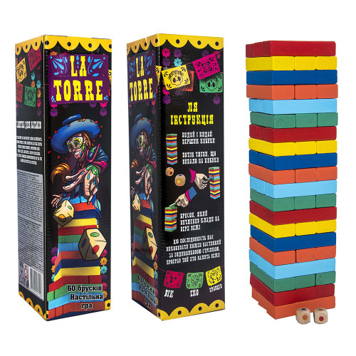 «La Torre» – любимая и давно известная Дженга, которая разнообразит свободное время любой компании, и что не менее важно всех возрастов. Принцип игры прост и понятен: тяни брусок, выкладывай его на вершину башни. Победителем станет тот, чей ход был последним перед падением башни!
