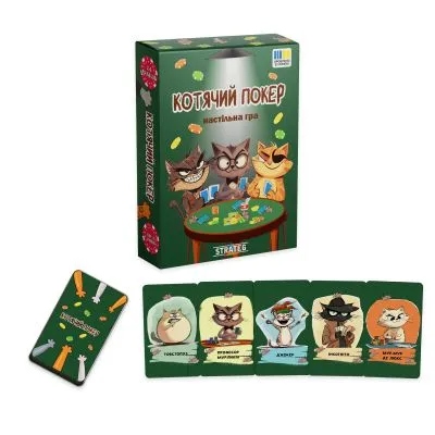 «Котячий покер» — це драйвова гра для вечірок, сімейних посиденьок і дружніх зустрічей. Веселі емоції й море сміху гарантовані!