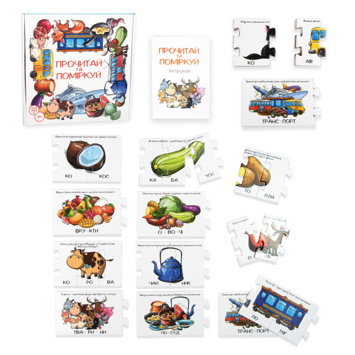 “Прочитай та поміркуй” Strateg (30373) – пазли для дошкільнят, які стануть найкращим другом у вивченні овочів, фруктів, тварин, транспорту та посуду. За допомогою яскравих картинок на пазлах, ваш малюк навчиться читати по складах. А формат пазлів розвиває логіку, пам’ять та увагу вашої дитини.