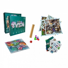 ♦ Комплект: 80 карточек, 7 фишек, 12 игровых полей, беговая дорожка, деревянная туба, кубик, инструкция.