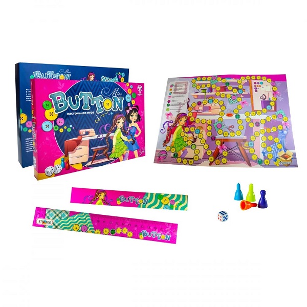 Участники устанавливают фишки в начале игрового поля и передвигают их в соответствии с количеством очков, выпавших на кубике. Само поле – это карта, на которой изображены мастерская и швейные принадлежности. Двигаясь по ней, нужно выполнять задания, собирать всё необходимое для пошива наряда, а также избегать ловушек. Всё это делает игру ещё интереснее. Побеждает в «Мисс Баттон» тот, кто первым придёт к финишу с полным набором для пошива платья.