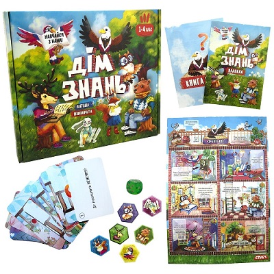 Настольная игра «Дом знаний» Strateg (30454) совмещает веселье с развитием ребёнка, но заинтересует и взрослых. Игра даст возможность развлечься всей семье и получить новые знания. Цель – путешествовать по комнатам большого дома, встречаться с его обитателями и отвечать на их вопросы.