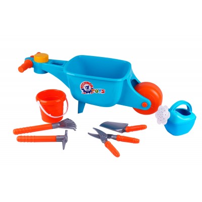 У наборі: тачка, лійка, відерко, секатор, совок, граблі, сапка.