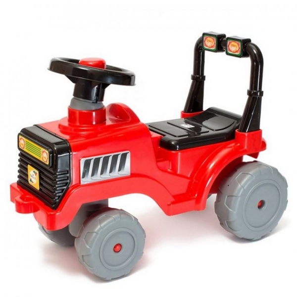 Машинка для катания Бэби трактор модель Орион 931. Данная модель сделана из качественной пластмассы и выдерживает до 30 кг веса. Машинка очень удобная и практична. На ней могут кататься детки от 3 лет. Спинка – ручка может использоваться для перенесения каталки. Руль с клаксоном, он обычно доставляет особую радость малышам. С помощью руля направляются передние колеса. Под сидением предусмотрена зона для мелких вещей или игрушек. Устойчивость машинки обеспечивается широкими колесами.