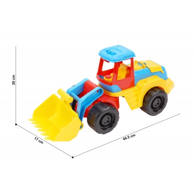 Новый "Трактор ТехноК»- это мощная строительная техника для работы в карьере, загрузки самосвала гравием, песком и другими строительными материалами. С ним можно придумать множество сюжетно-ролевых игр дома и на дворе. Трактор пригодится для строительства дорог, мостов и автостоянок. С трактором малыш почувствует себя настоящим строителем.